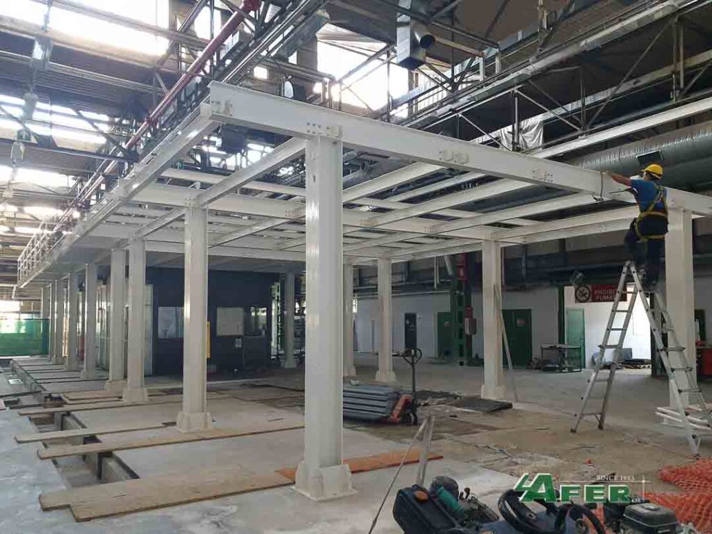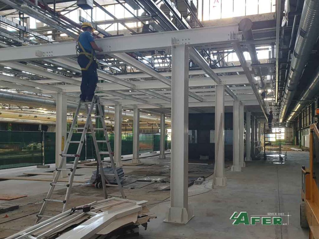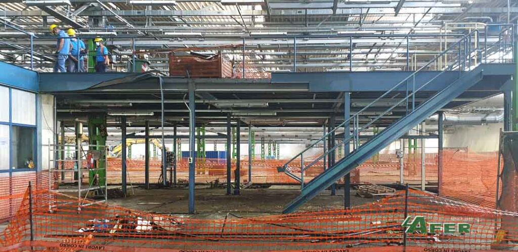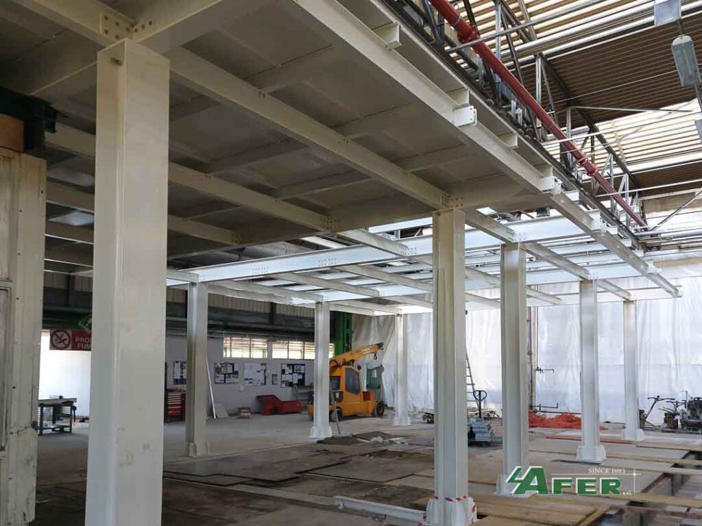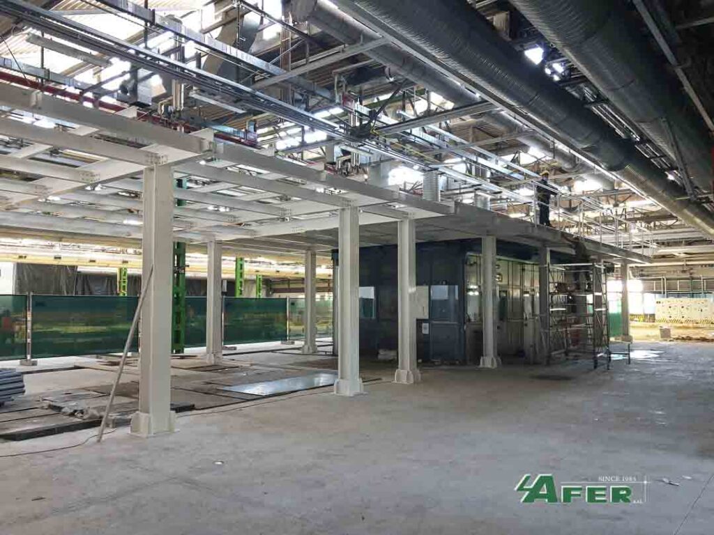 Abbiamo curato lo smontaggio parziale e la ricostruzione di un soppalco metallico nelle sale prova motori, rispettando le più recenti normative strutturali. L’intervento ha incluso la progettazione esecutiva della nuova struttura, l’installazione di parapetti di sicurezza, scale di accesso e la gestione completa delle attività di cantiere, garantendo un ambiente rinnovato e funzionale.
