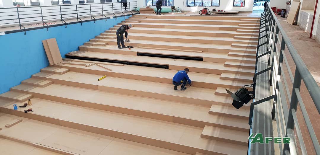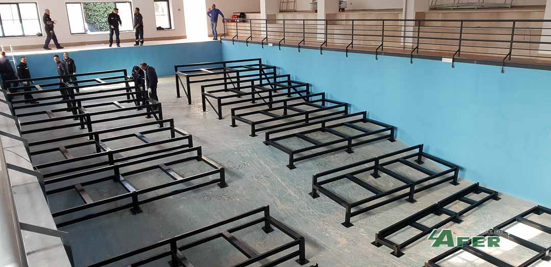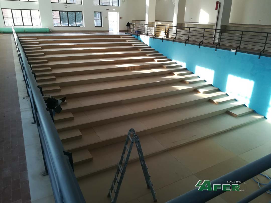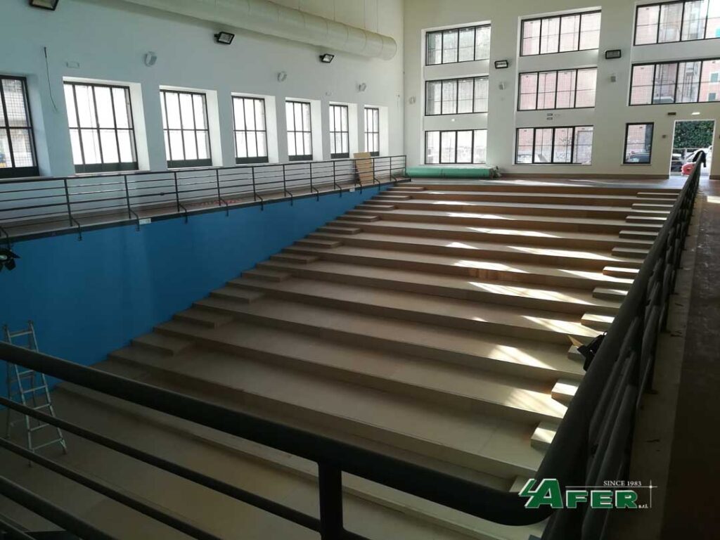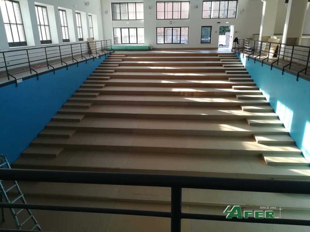 Per il Dipartimento di Economia dell’Università di Foggia, nella prestigiosa sede dell’ex piscina G.I.L., abbiamo realizzato la fornitura e la posa in opera di una tribuna fissa. Il nostro intervento ha compreso la costruzione dell’intera struttura portante in acciaio, il trattamento protettivo con vernice antiruggine e il rivestimento finale in MDF, che conferisce un aspetto elegante e accogliente. Un lavoro completo per uno spazio accademico di primo piano.