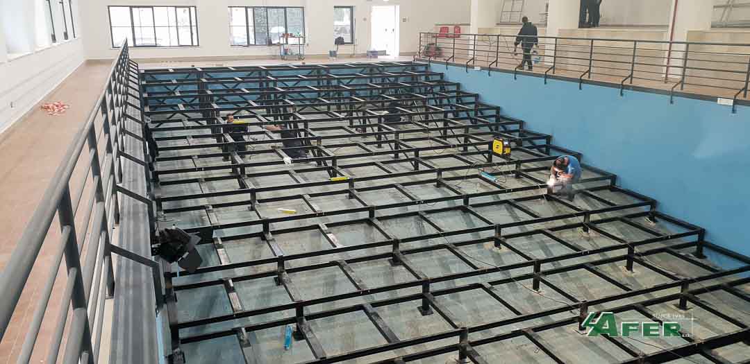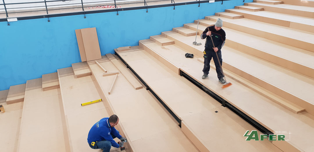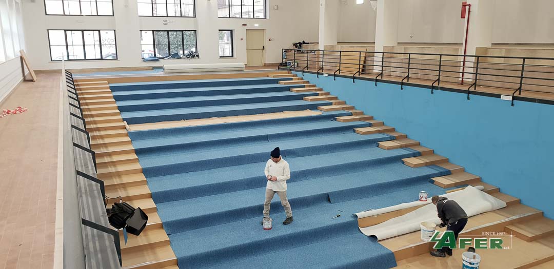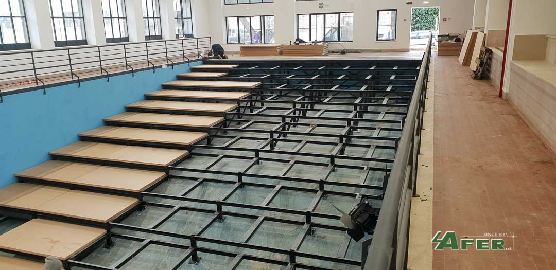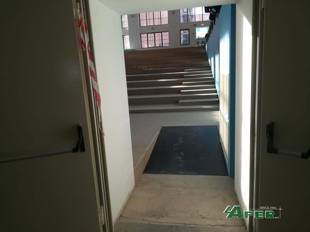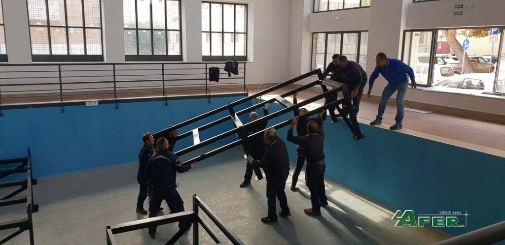 Per il Dipartimento di Economia dell’Università di Foggia, nella prestigiosa sede dell’ex piscina G.I.L., abbiamo realizzato la fornitura e la posa in opera di una tribuna fissa. Il nostro intervento ha compreso la costruzione dell’intera struttura portante in acciaio, il trattamento protettivo con vernice antiruggine e il rivestimento finale in MDF, che conferisce un aspetto elegante e accogliente. Un lavoro completo per uno spazio accademico di primo piano.